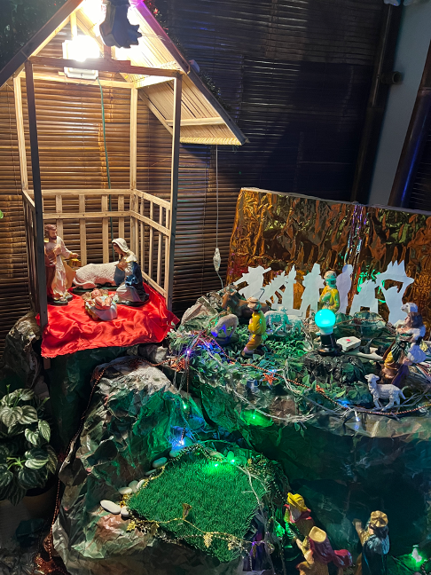 Setiap kali menjelang Natal, putra bungsu Bu Pepey Riawati, Albertus Magnus Iwo pasti membuat kendang Natal di lantai 2 Griya Prasanti. Lantai 2, memang, bernuansa Katolik.